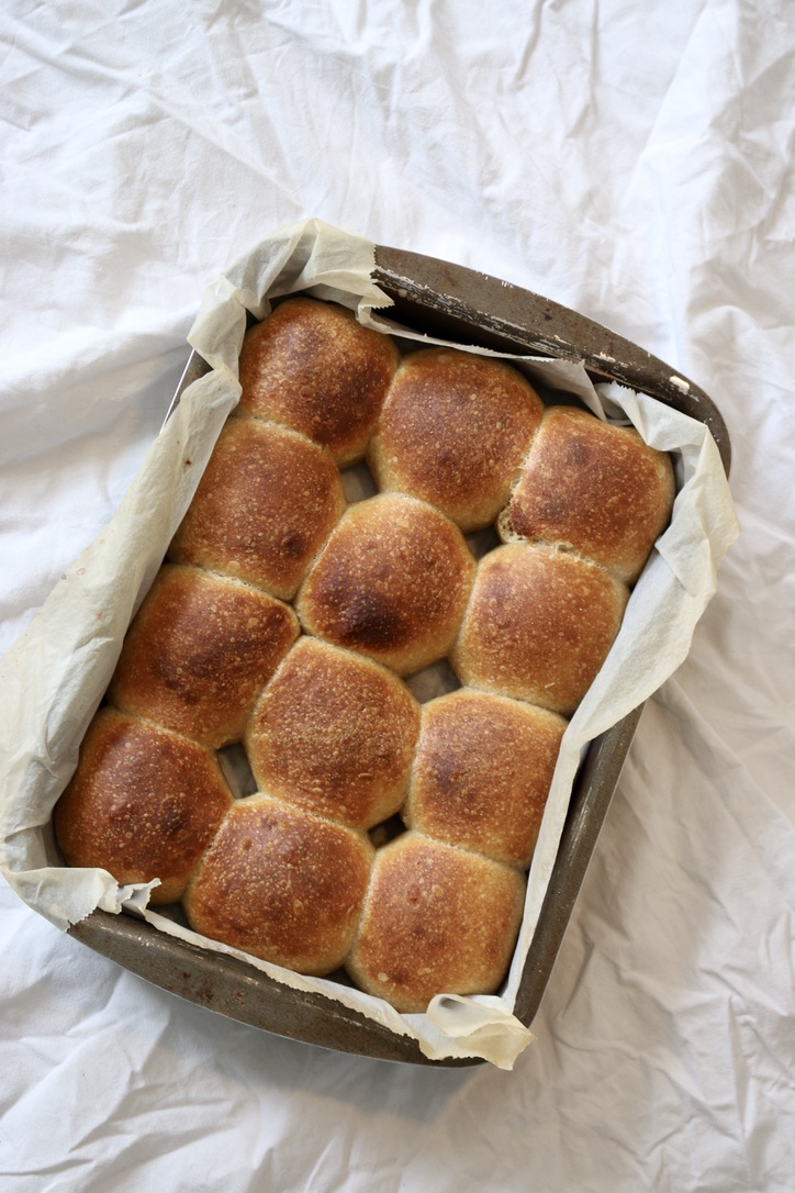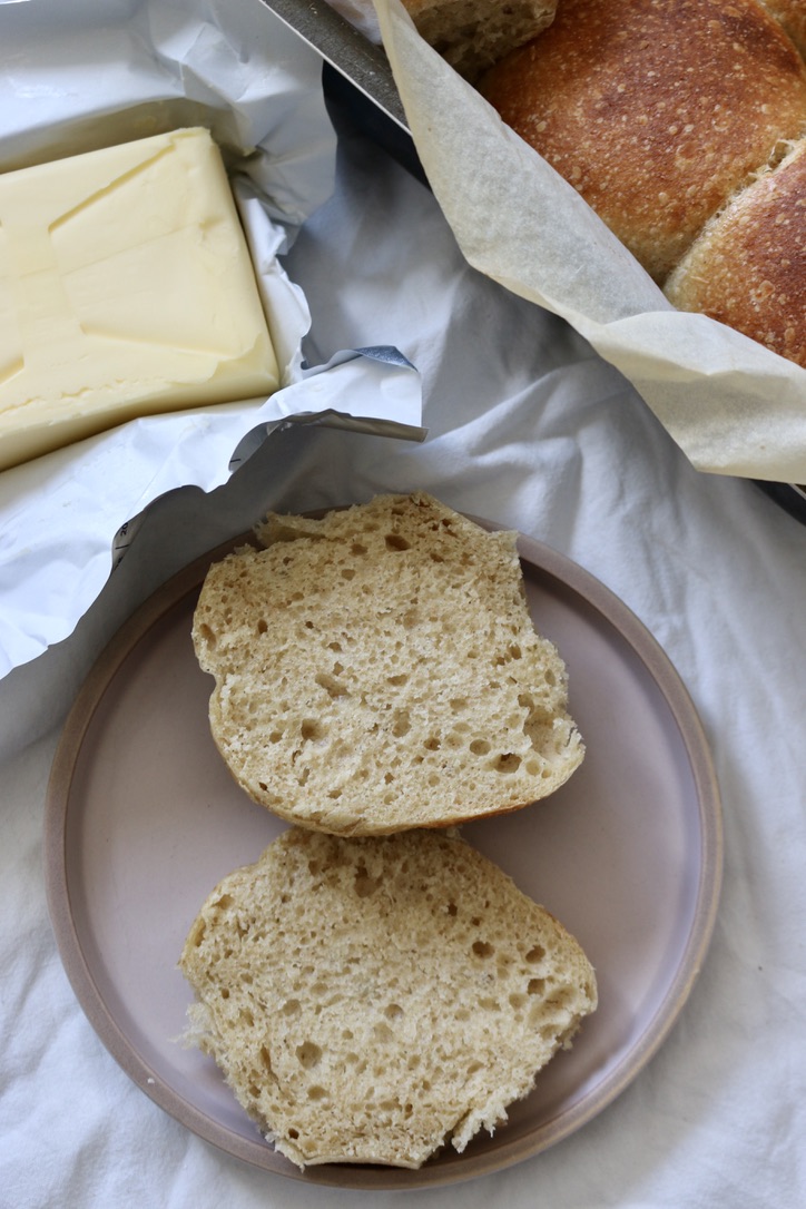 Anyways, sidste år kom jeg med en opskrift på de klassiske hveder og den er selvfølgelig til at finde herinde endnu. Men i år, med Carsten i “hånden” (eller på køkkenbordet, om man vil) var det på tide at udfordre dem lidt og derfor gav jeg mig i kast med at afprøve en version hævet på surdej og her kommer resultatet, og det er altså bare blevet top lækkert, luftigt og præcis som det skal være – både ristet og uristet, varme eller kolde.